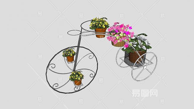 这是植物架SU模型,以自行车为形式的盆。所使用的材料是扁圆条。可以用不同的颜色喘气。它很适合在上种植。植物架SU模型下载_sketchup图大师SKP模型