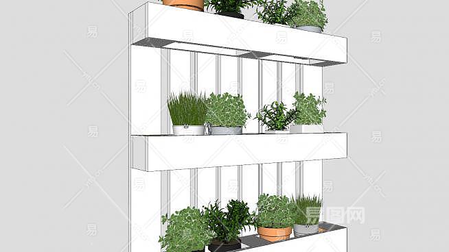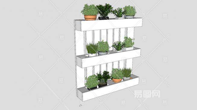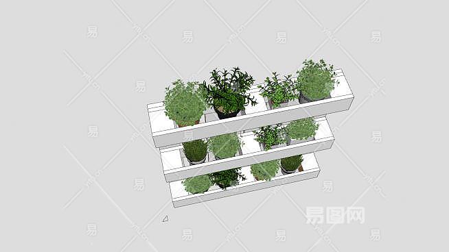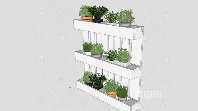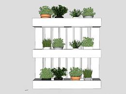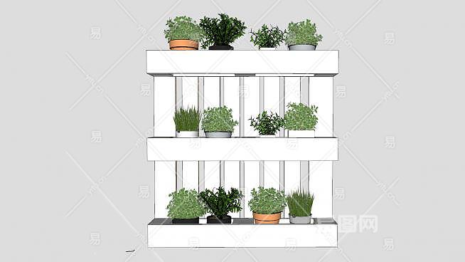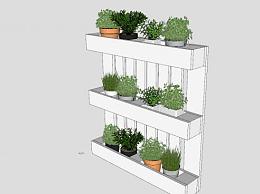托盘花盒白色花架SU模型下载_sketchup草图大师SKP模型