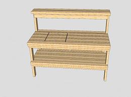 这是5英尺盆栽板凳架SU模型,由2x2和2x4块木板交替构成的三层的盆工作台,用于装饰。它的设计是由红木,压力处理木材,柏,或者其他防木材制成的。不需要特别的技能来建造。建议使用圆锯和卷轴锯。在工作台上的舱口下面有一个土筛。5英尺盆栽板凳架SU模型下载_sketchup图大师SKP模型