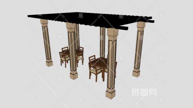 这是木棚架下的餐桌SU模型,架可作遮荫休息之用,并可点缀园景。木棚架下的餐桌SU模型下载_sketchup图大师SKP模型