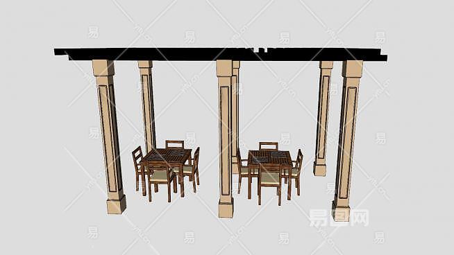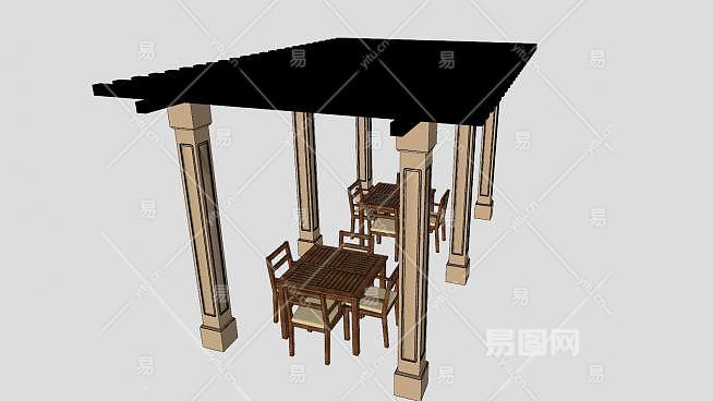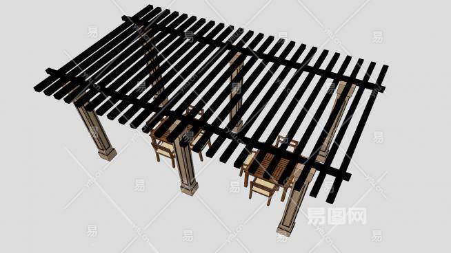 木棚花架下的餐桌SU模型下载_sketchup草图大师SKP模型