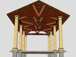 仿古中式屋檐廊式花架SU模型下载_sketchup草图大师SKP模型