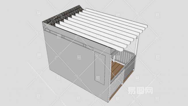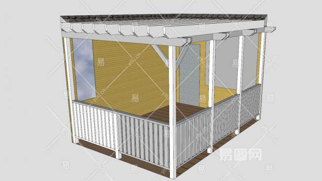 这是阳台架护栏SU模型,木藤架现有甲板上的房子阳台架护栏SU模型下载_sketchup图大师SKP模型
