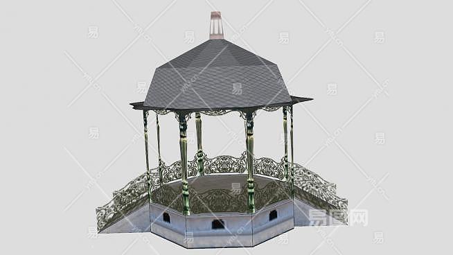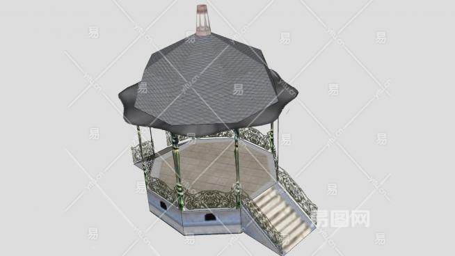 公园铁艺花架阶梯凉亭SU模型下载_sketchup草图大师SKP模型