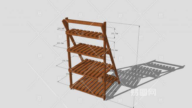 花架木制室内花架SU模型下载_sketchup草图大师SKP模型