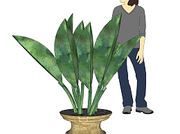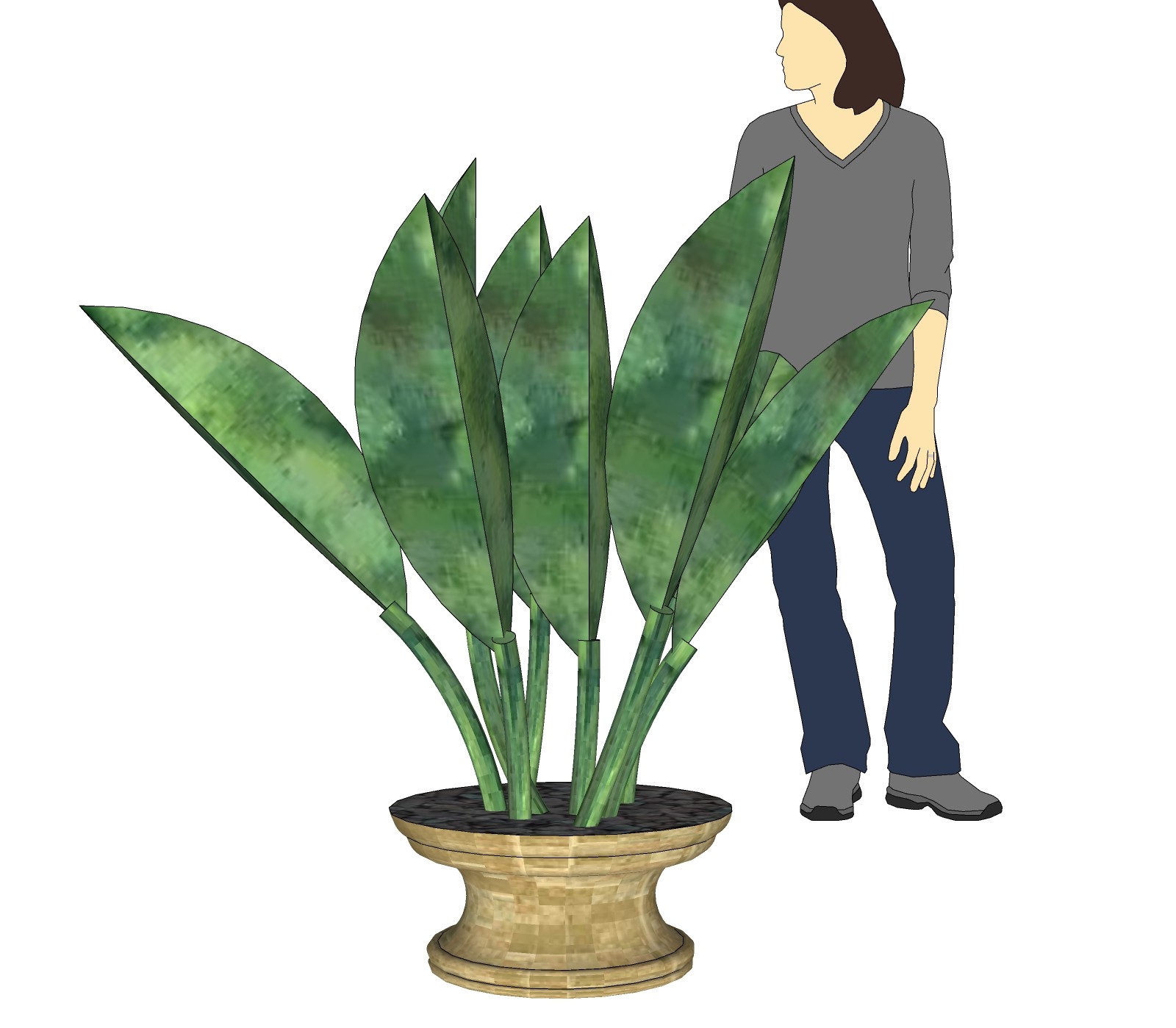 大叶万年青盆栽植物su模型,复古花艺草图大师模型下载