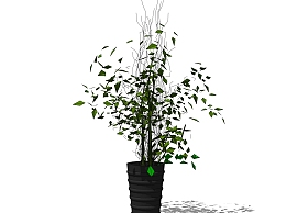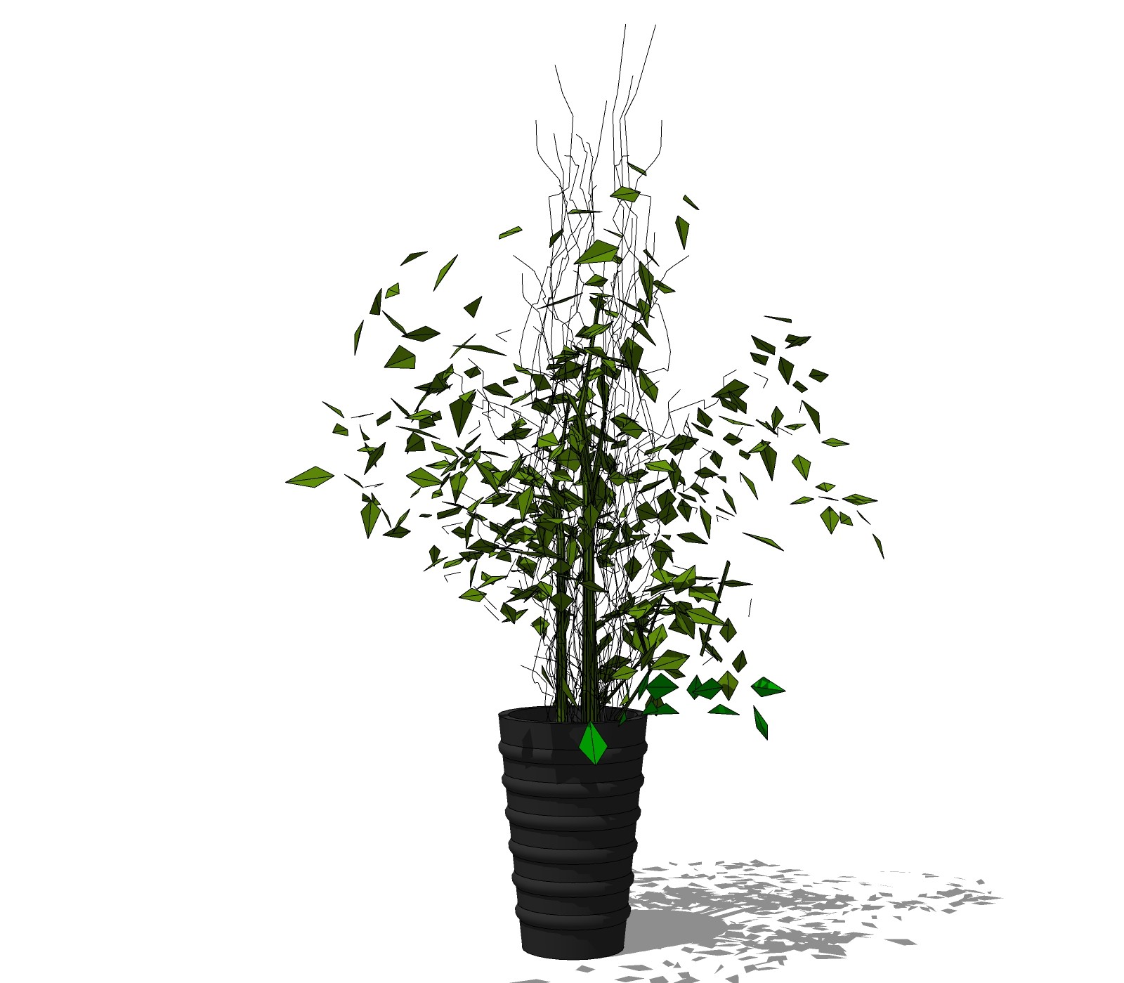 陶瓷花盆植物su模型,南天竹花艺草图大师模型下载