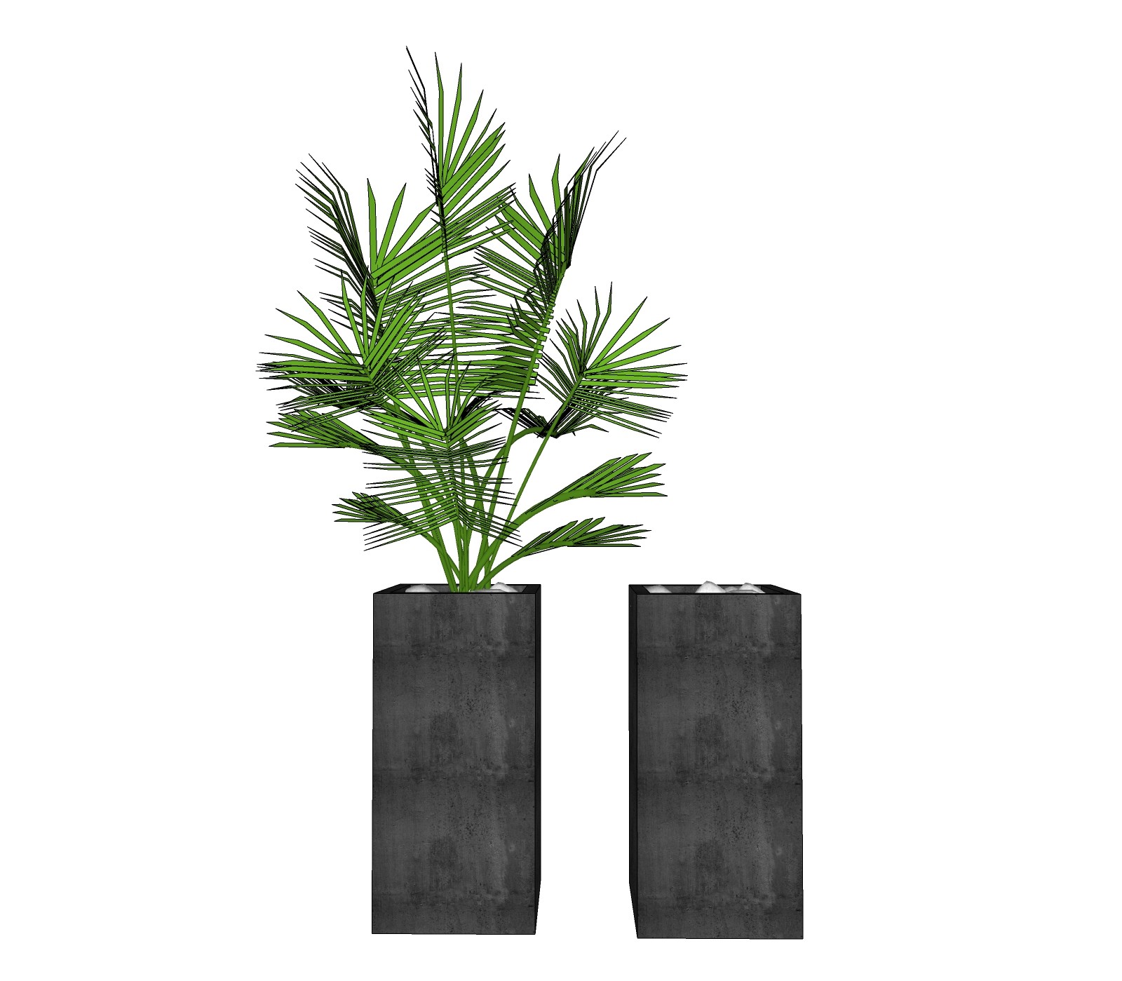 北欧水泥花盆植物su模型,散尾葵花艺草图大师模型下载