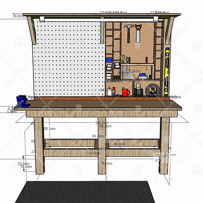 现代实木工作台su模型