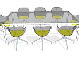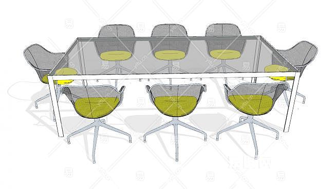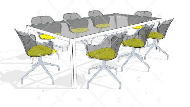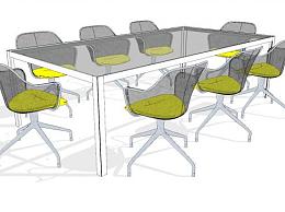 烤漆玻璃8人座会议桌SU模型下载_sketchup草图大师SKP模型