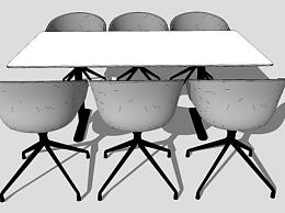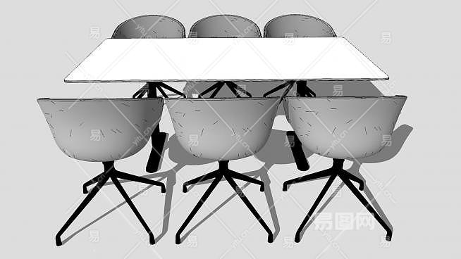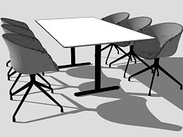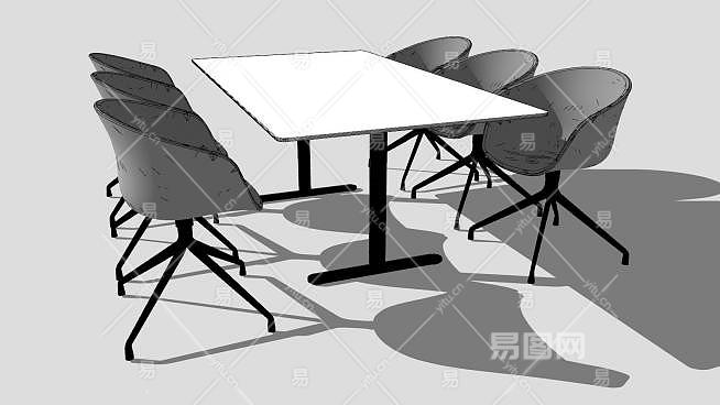 六人现代餐桌洽谈桌SU模型下载_sketchup草图大师SKP模型