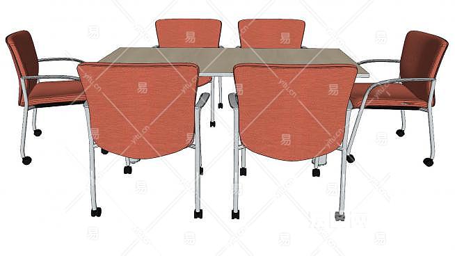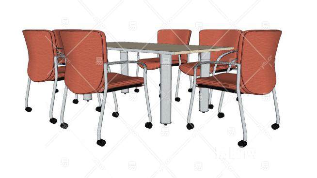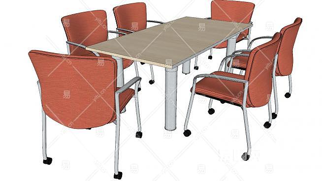 6人洽谈桌SU模型下载_sketchup草图大师SKP模型