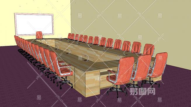 这是现代会议室木制桌子SU模型,指供开会用的房间,可以用于召开学术报告、会议、培训、组织活动和接待客等。现代会议室木制桌子SU模型下载_sketchup图大师SKP模型