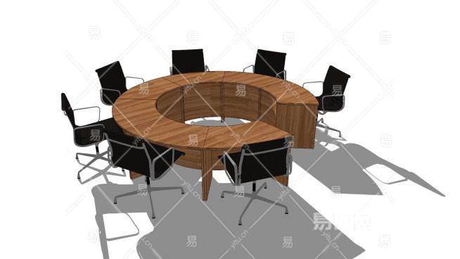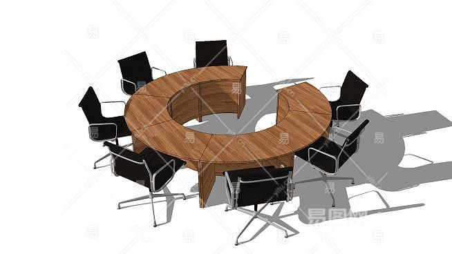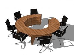 开口型圆形会议桌SU模型下载_sketchup草图大师SKP模型