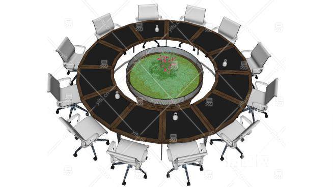 这是环形桌子su模型,参会者围圆桌而坐。适合于中式宴会,如公司年会、晚宴、答谢会、招待会和茶话会等。环形桌子su模型下载_sketchup图大师SKP模型