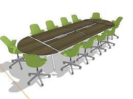 现代椭圆形会议桌SU模型下载_sketchup草图大师SKP模型