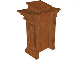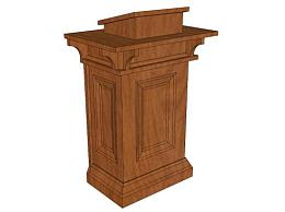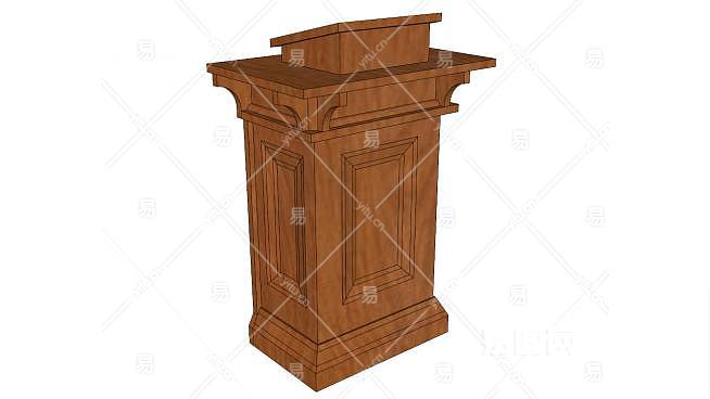 这是宣誓台su模型,演讲台,其特征在于,侧板均为弧形板,在底座和台面之间还设有两根支撑柱,所述支撑柱设于侧板、后面板所形成的空间内。宣誓台su模型下载_sketchup图大师SKP模型