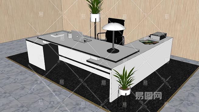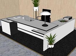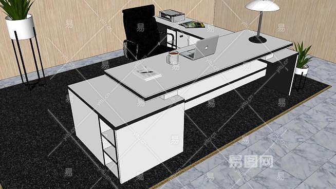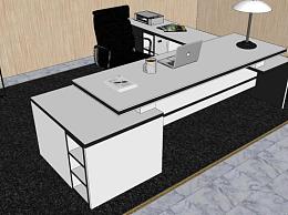 老板办公桌大班台白色系SU模型下载_sketchup草图大师SKP模型