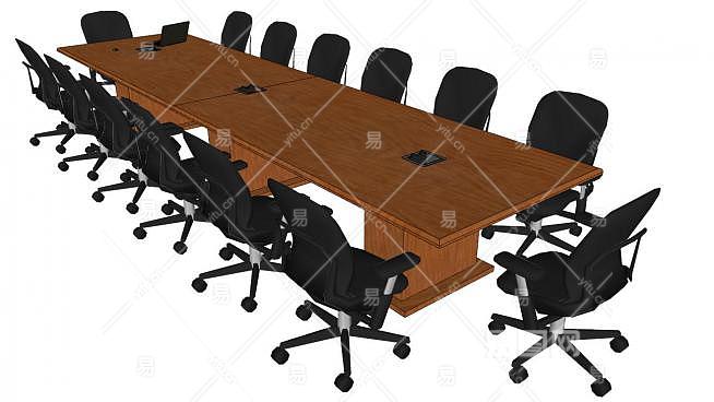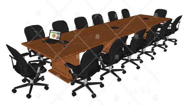 这是会议室长桌su模型,会议桌,是常见的现代办公用品。一般选用实木喷漆,进口的樱桃木皮做饰面,采用环保基材,进口PU类高档聚酯漆,进口优质五金件。会议桌分为:普通小型会议桌、大型会议桌会议室长桌su模型下载_sketchup图大师SKP模型