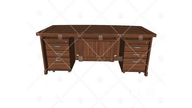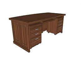 木制办公桌子SU模型下载_sketchup草图大师SKP模型