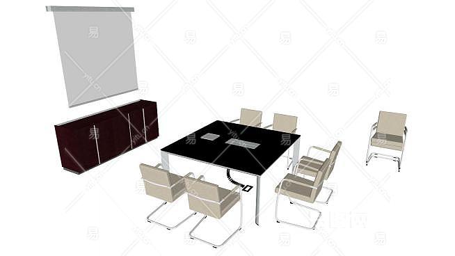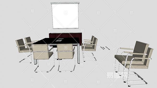 这是现代钢架会议桌SU模型,是常见的现代办公用品。一般选用实木喷漆,进口的樱桃木皮做饰面,采用环保基材,进口PU类高档聚酯漆,进口优质五金件。现代钢架会议桌SU模型下载_sketchup图大师SKP模型
