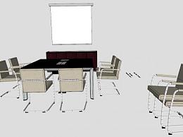 现代钢架会议桌SU模型下载_sketchup草图大师SKP模型