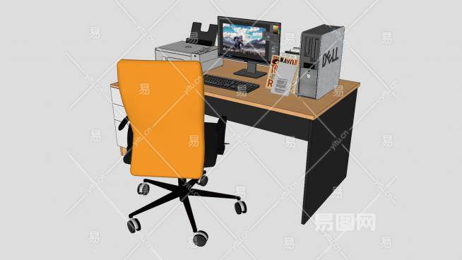 电脑桌办公设备SU模型下载_sketchup草图大师SKP模型