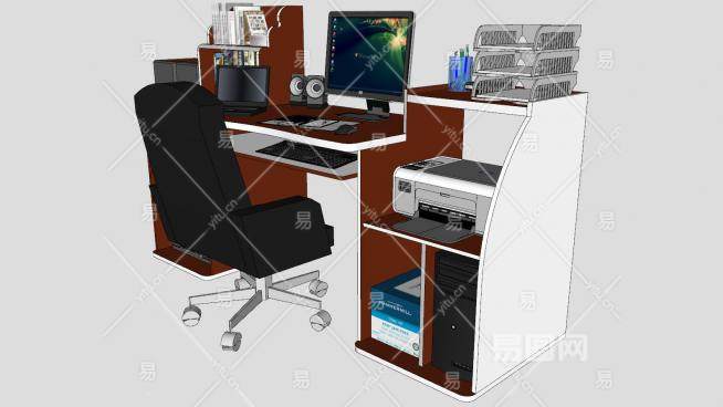 这是电脑桌和办公设备SU模型,电脑桌是一种用来放电脑的桌子。是很重要的办公及生活用品。现代的电脑桌款式多样质材多样,设计也多样化。随着社会和科技的进步,电脑桌的款式设计也是日新月异。电脑桌和办公设备SU模型下载_sketchup图大师SKP模型