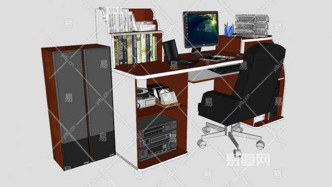 电脑桌和办公设备SU模型下载_sketchup草图大师SKP模型