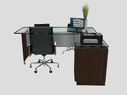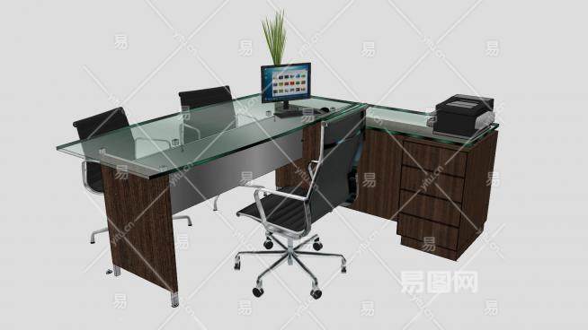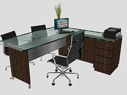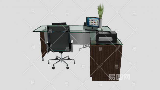 老板办公桌玻璃台面办公椅SU模型下载_sketchup草图大师SKP模型