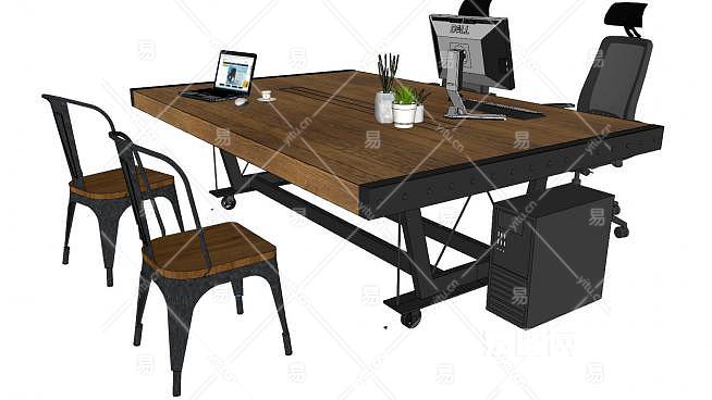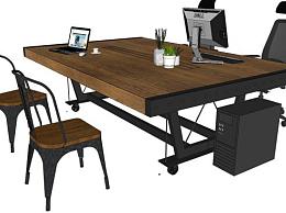 木结构办公桌电脑SU模型下载_sketchup草图大师SKP模型