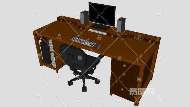 简易电脑办公桌SU模型下载_sketchup草图大师SKP模型