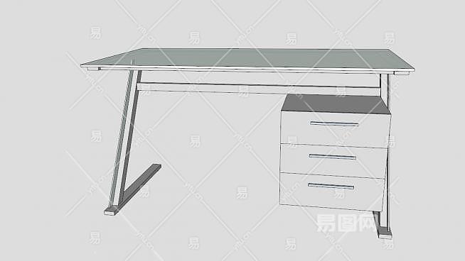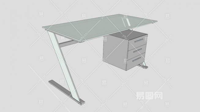 这是玻璃办公桌子SU模型,桌上有玻璃和玻璃的腿板。宽度:1400毫米(5.12英寸)深度:700毫米(27.56英寸)高:775毫米(30.52英寸)。玻璃办公桌子SU模型下载_sketchup图大师SKP模型