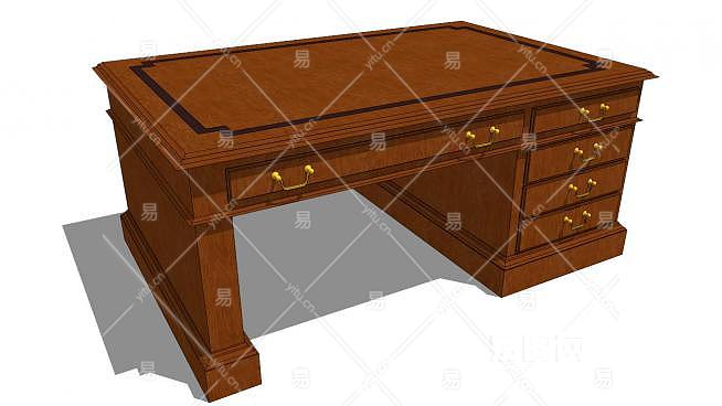 红木办公桌su模型下载_sketchup草图大师SKP模型