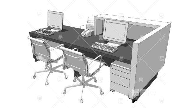 烤漆办公接待台SU模型下载_sketchup草图大师SKP模型