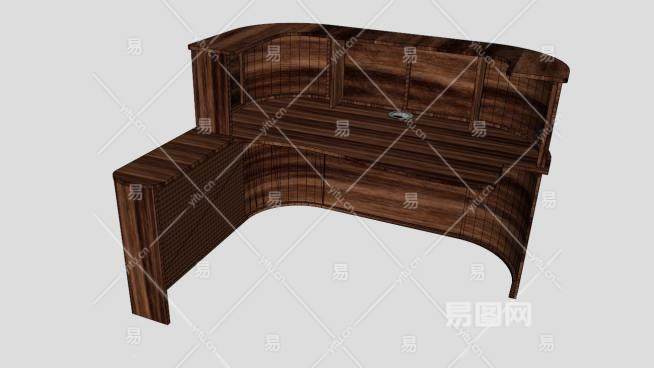 实木接待柜台SU模型下载_sketchup草图大师SKP模型