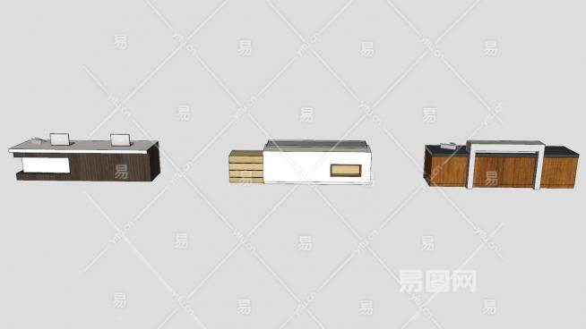 现代办公桌前台桌吧台SU模型下载_sketchup草图大师SKP模型