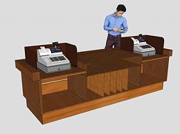 木质双收银台SU模型下载_sketchup草图大师SKP模型