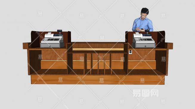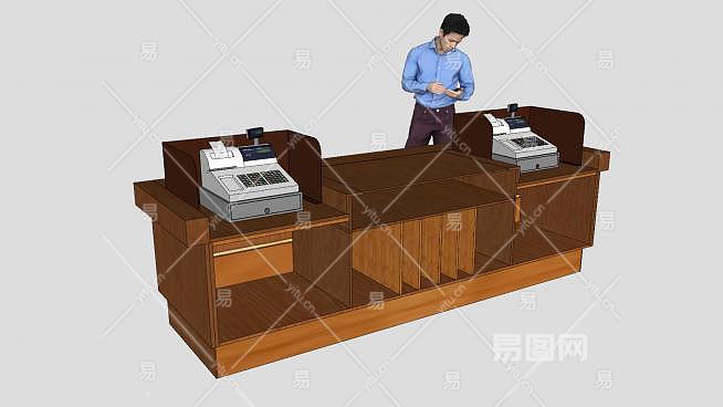 这是木质双收银台SU模型,收银台作为商场超市所必不可少的配套设施,越来越多的被客户所关注。收银台俗称付款处,是顾客付款交易的方,也是顾客在商店最后停留的方,这里给顾客留下的印象好坏,决定顾客是否会第二次光临,对于任何一家零售卖场来说,重要之处都是不言而喻的。木质双收银台SU模型下载_sketchup图大师SKP模型