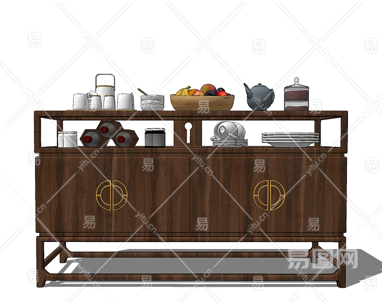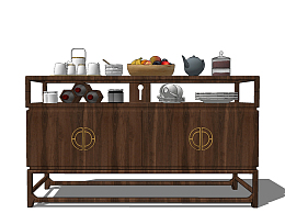新中式实木餐边柜su草图模型下载