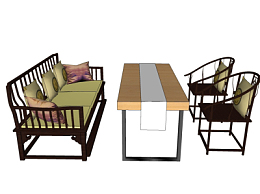 新中式休闲桌椅su模型