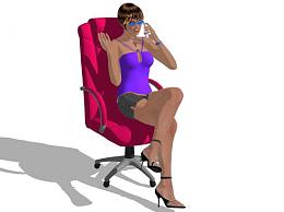 打电话的女性坐姿SU模型下载_sketchup草图大师SKP模型