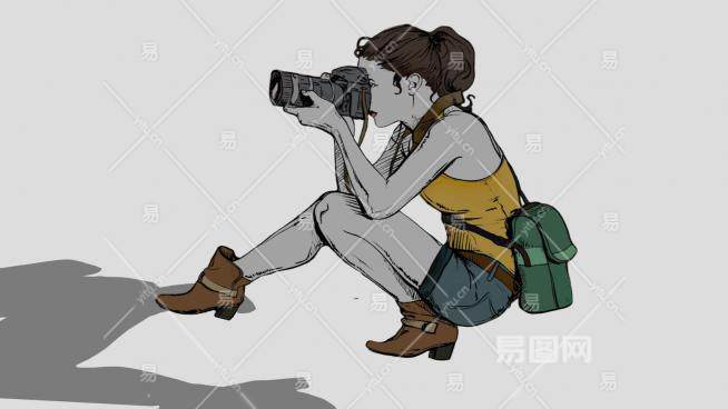 蹲下拍照摄像的女摄影师SU模型下载_sketchup草图大师SKP模型