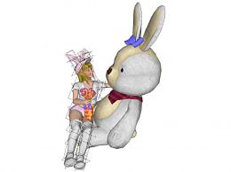 美女熊抱兔子布娃娃SU模型下载_sketchup草图大师SKP模型