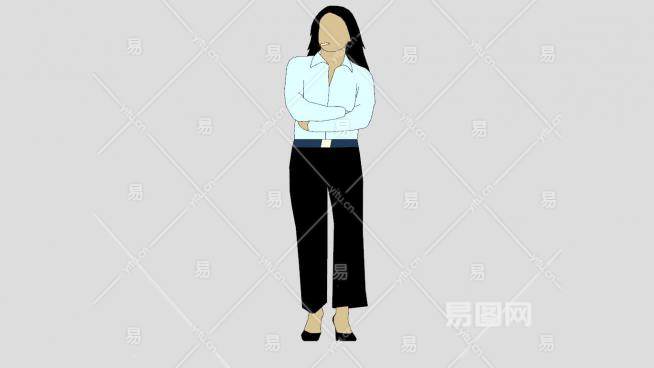 这是吸烟的女SU模型,一个吸烟的2D女,双手环胸。吸烟的女SU模型下载_sketchup图大师SKP模型
