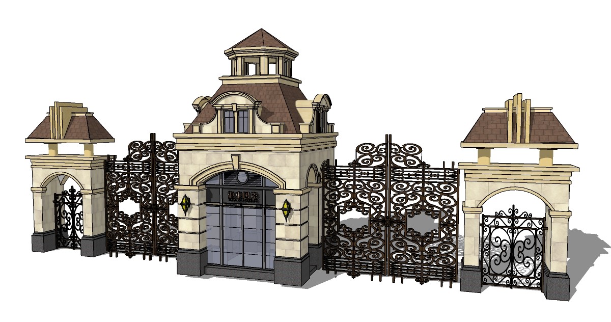 欧式入口大门skp文件下载,做工细致,万里挑一。易图网能为您推荐大量精致的草图大师入口大门su模型,原创sketchup大门模型分享。