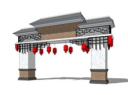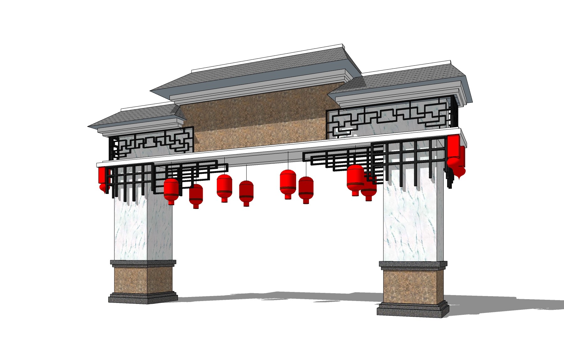 中式牌坊大门草图大师模型,牌坊大门sketchup模型免费下载