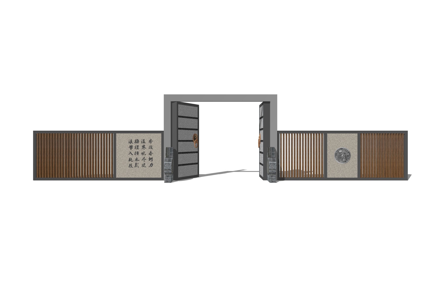 中式院门院墙草图大师模型,院门院墙sketchup模型免费下载
