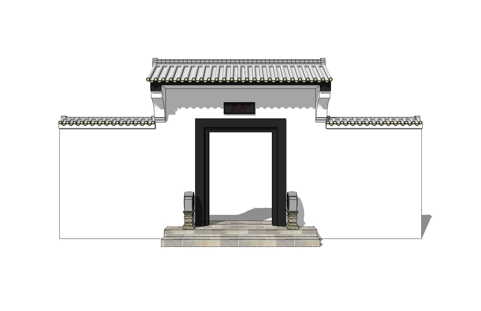 中式院门院墙草图大师模型,院门院墙sketchup模型免费下载