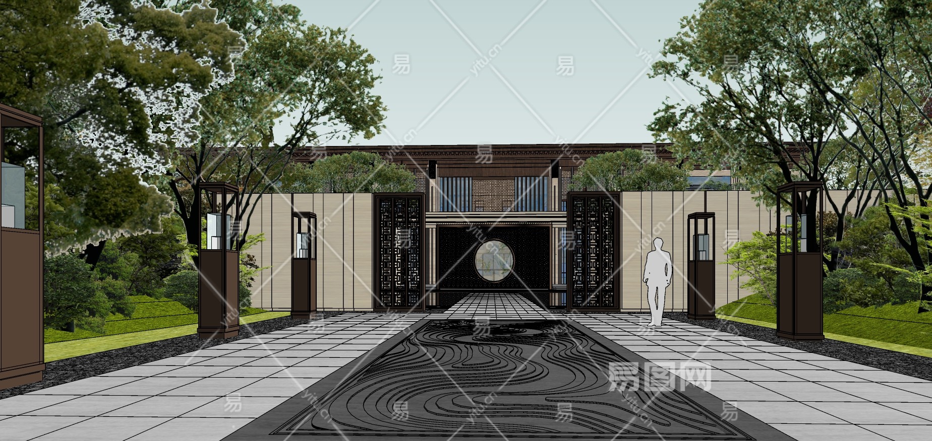 18北京中骏西山天璟中式示范区 度假山庄景观规划 度假酒店 会所 庭院景观 园林规划 别墅区景观规划 入口景观 别墅大门 门头su草图模型下载